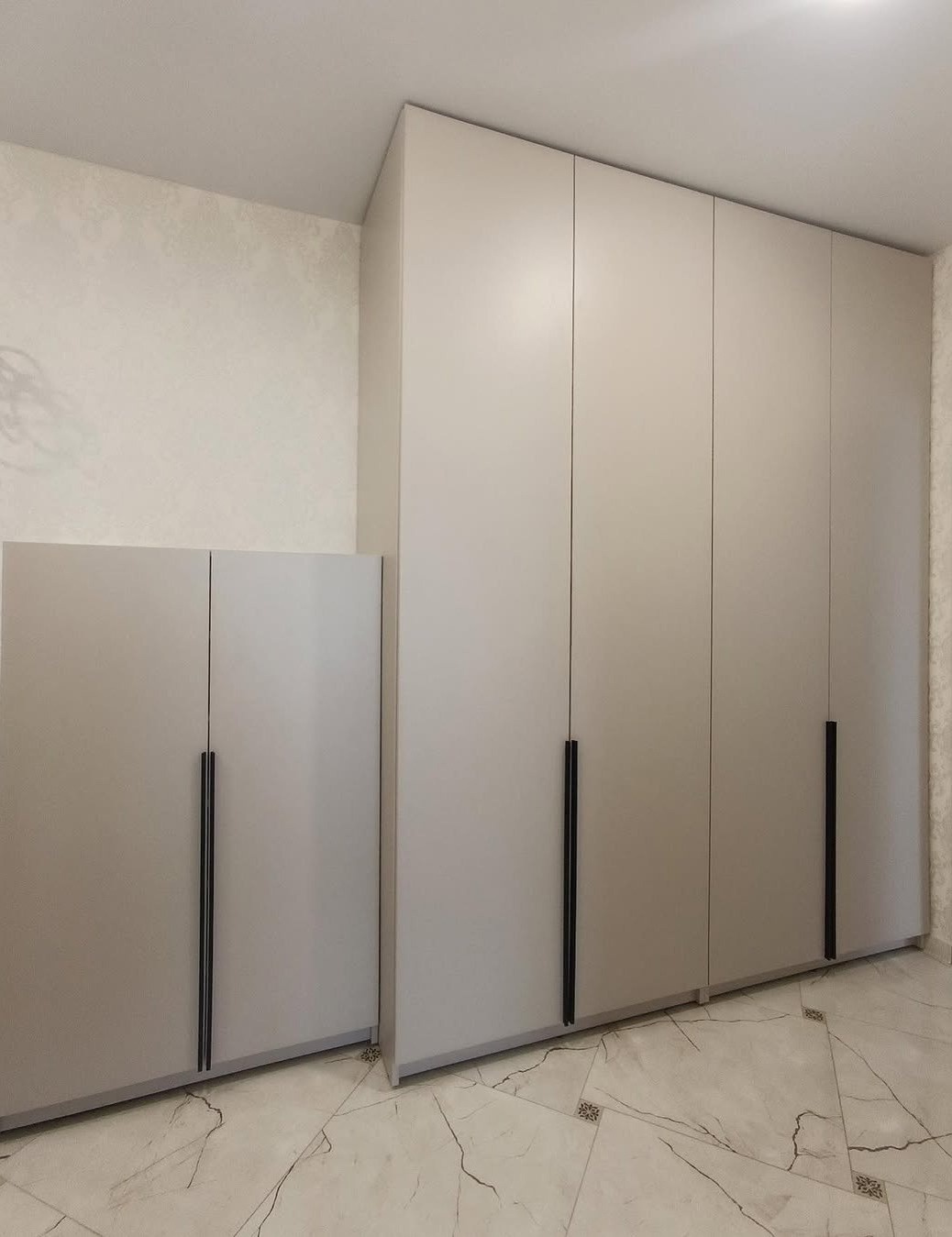 В результате у вас будет 3D-визуализация кухни с размерами и вариантами функционального наполнения. Вы познакомитесь с формой и цветом вертикальных ручек, с цветом и текстурой корпуса, а также с самим материалом дверей-купе.